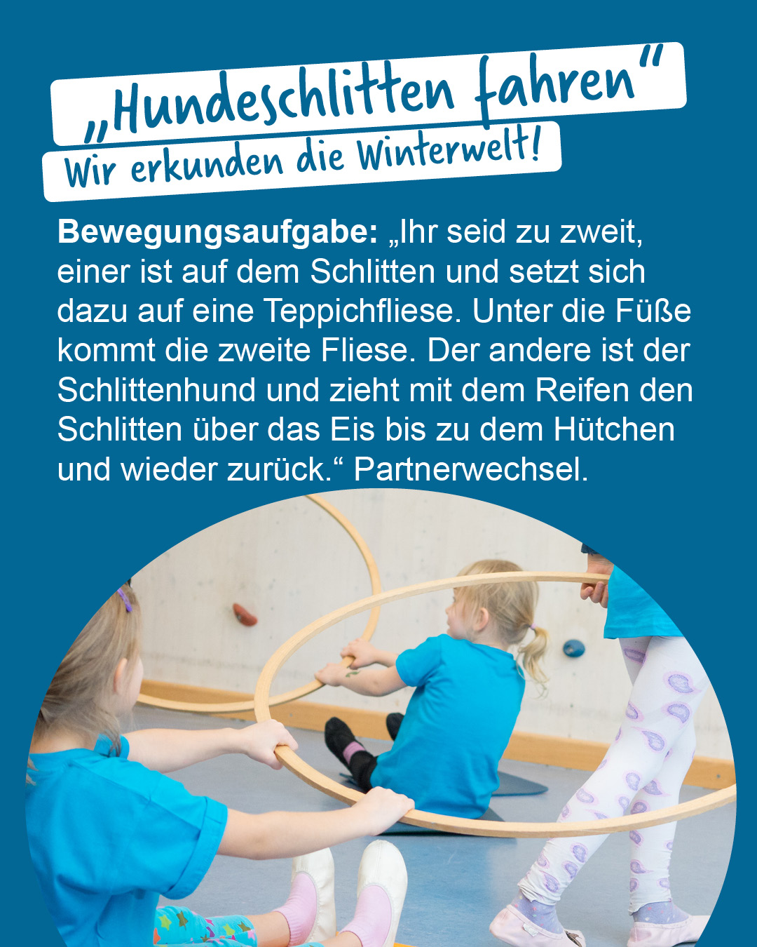- „Jedes Kind bekommt einen Schlitten (Teppichfliese zeigen und austeilen) und kann damit Schlitten fahren.“